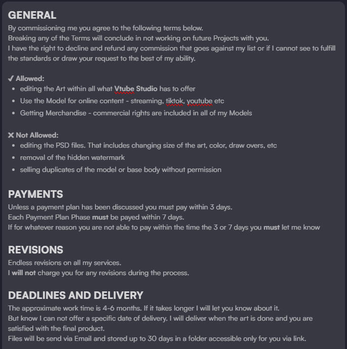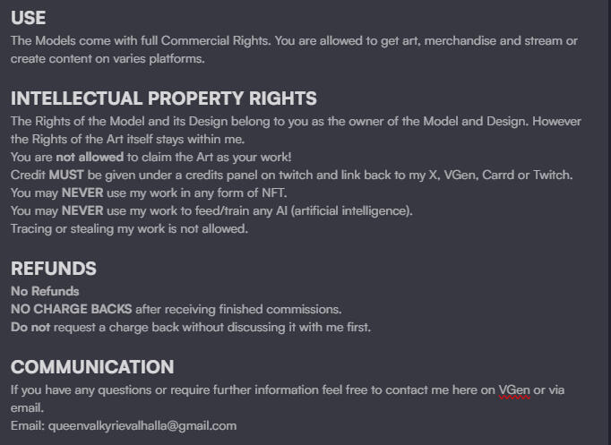 TOS may vary between Emotes, Illustrations and Vtuber Models